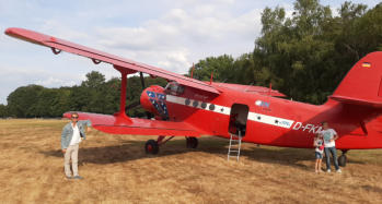 Ein Anlass, auf den Josef Schmitz und Detlev ?? stolz sein können - Die offizielle Vorstellung ihrer Projekte:- Fertigstellung der Restauration eines Bücker-Jungmann-Doppeldeckers- Fertigstellung der Piepenpol Camper nach Orginal-PlänenEingeladen wurden Freunde, Helfer und Oldtimer-Liebhaber um diesen Anlass gebührend zu feiern.