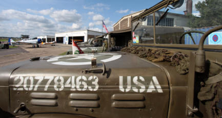 An diesem Samstag erhielten wir Besuch vom Old Hickory Historical Military Car Club aus den Niederlanden. Gegen Mittag trafen die Hickories mit zwölf Jeeps und Transportfahrzeugen sowie mehreren originalen Motorrädern aus den 1950er Jahren am Flugplatz ein und drapierten sich auf dem Grasstreifen zwischen den Oldtimerhallen. Dazu hatten wir unsere Schätze aus dem Hangar gezogen. Es ergab sich eine besondere Atmosphäre, wenn man als Schaulustiger durch die Reihen der Fahrzeuge, Motorräder und Flugzeuge aus der Zeit von fast 80 Jahren wanderte, begleitet von dezenter Musik aus dieser Zeit. Hierzu wurde auch in der Aachener Zeitung berichtet. Die Artikel sind hier zu finden.