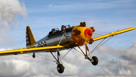echten Oldtimer-Flugzeugen. Ein Erlebnis! Man spürt das Vibrieren des Motors, riecht das